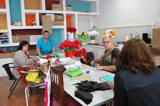 A surpresa poderá estar na própria montagem e claro nas flores escolhidas para trabalhar! Há já muito trabalho feito sendo que o verde e o vermelho são as as cores predominantes. As rosas são algumas das flores executadas que tivemos oportunidade de apreciar mas há outras que não são reveladas pois integram o segredo que querem guardar até ao fim.
